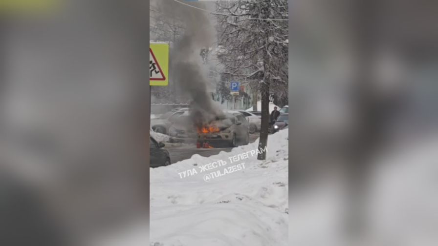 Туле на улице Фридриха Энгельса загорелся кроссовер. Кадрами делятся очевидцы в соцсетях.