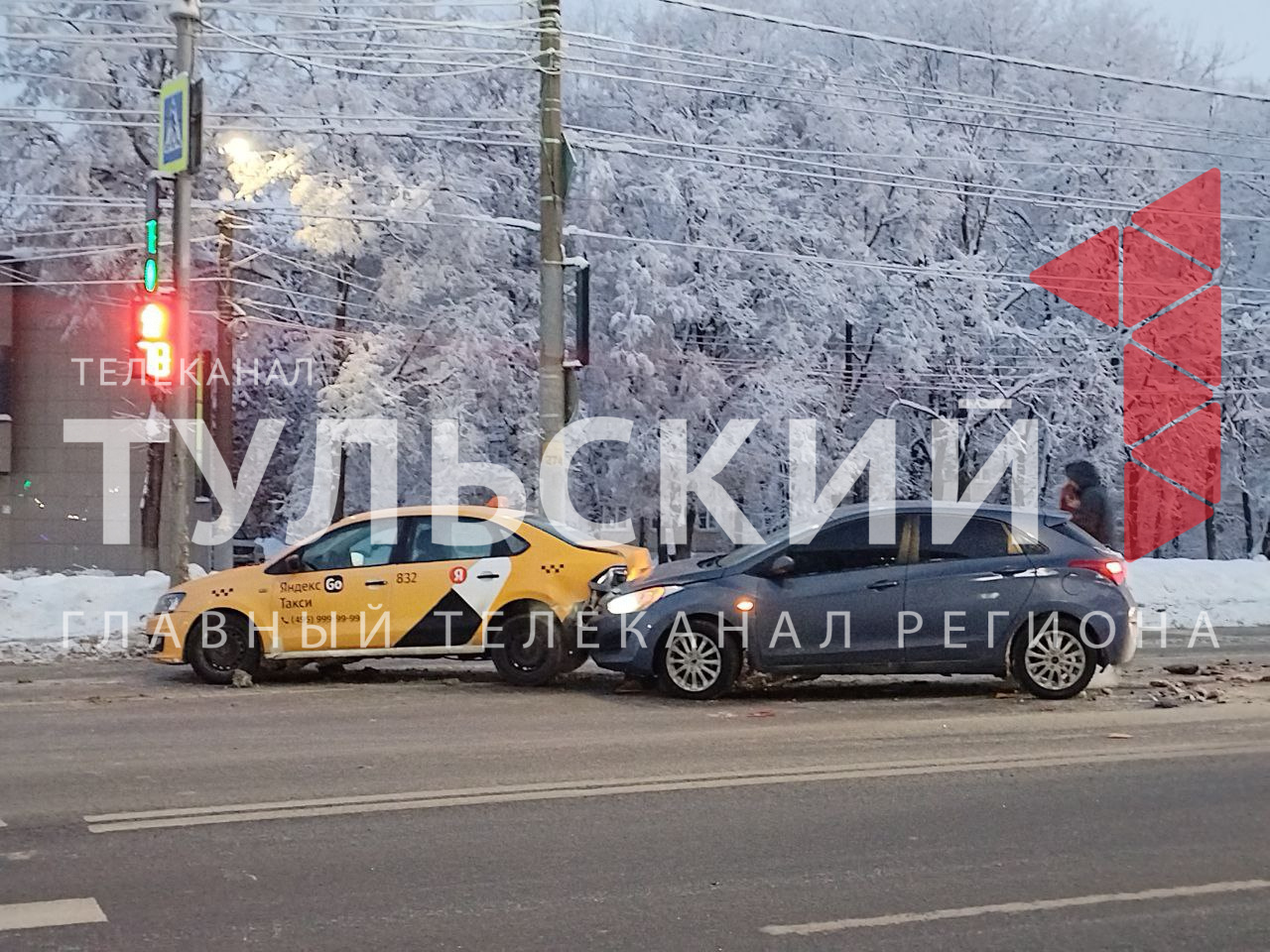 Предположительно, водитель «Хендай» не успел остановиться на светофоре и врезался в такси.