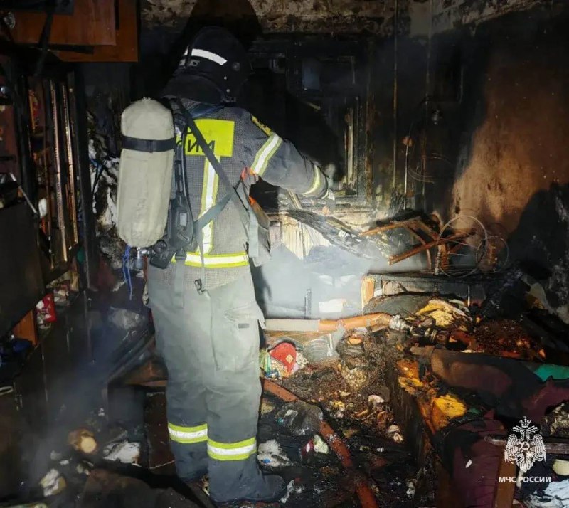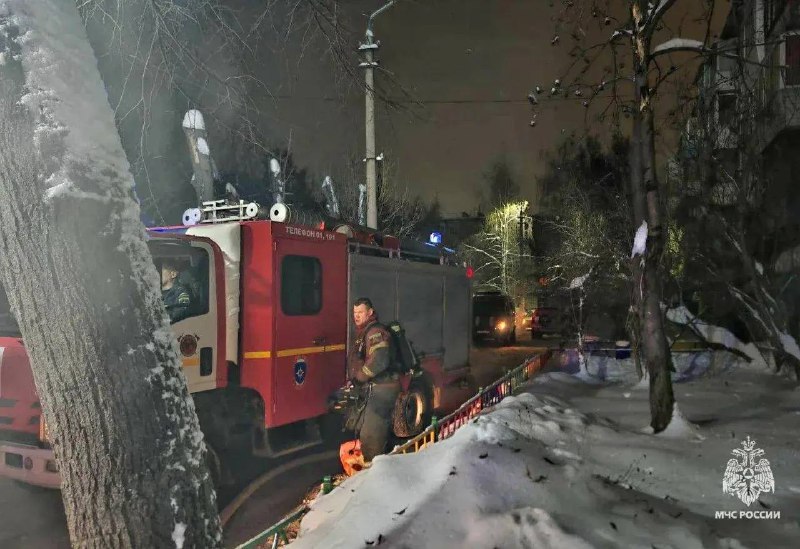 Возгорание произошло около часа ночи в доме на 4 этаже на улице Софьи Перовской. Пожарно-спасательные подразделения прибыли на место спустя пару минут.