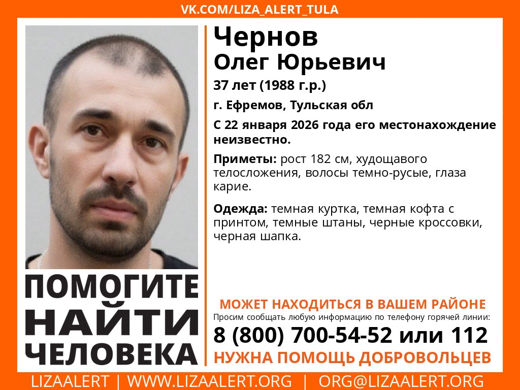 Чернов Олег Юрьевич, 37 лет. С 22 января 2026 года его местонахождение неизвестно.