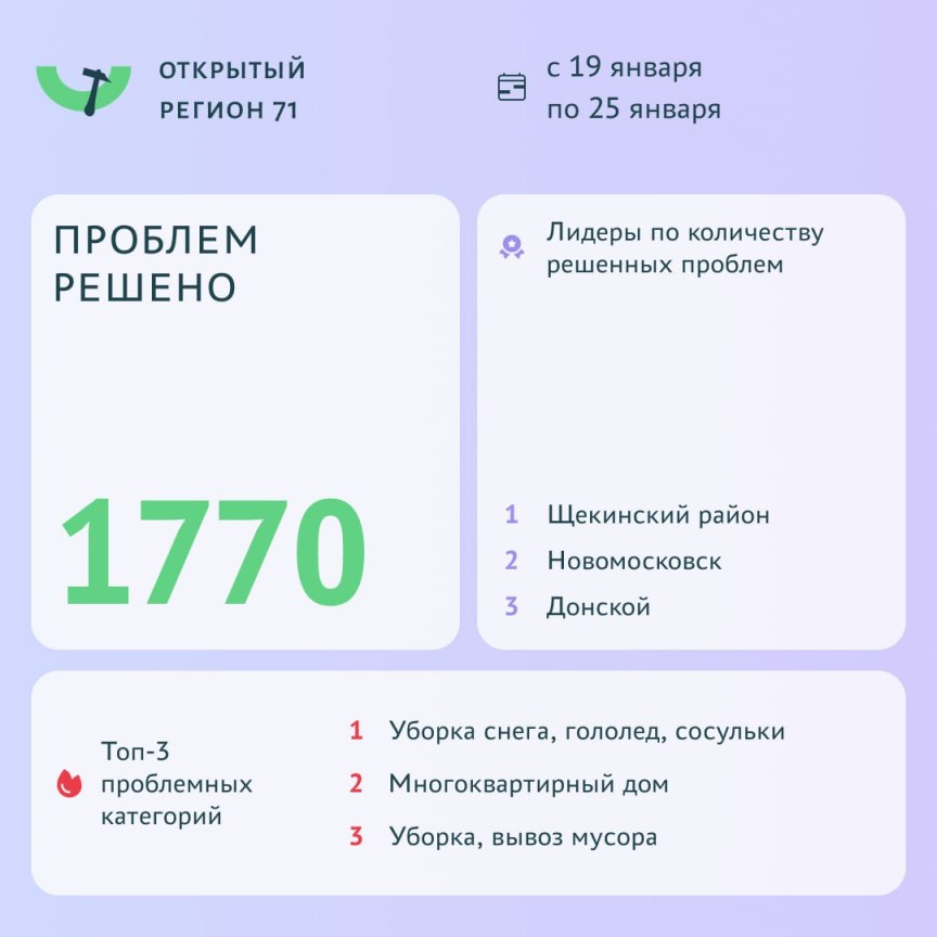 За неделю с 19 по 25 января на сайте решили 1 770 вопросов туляков. Чаще всего туляки интересовались уборкой снега, гололед и сосульки.