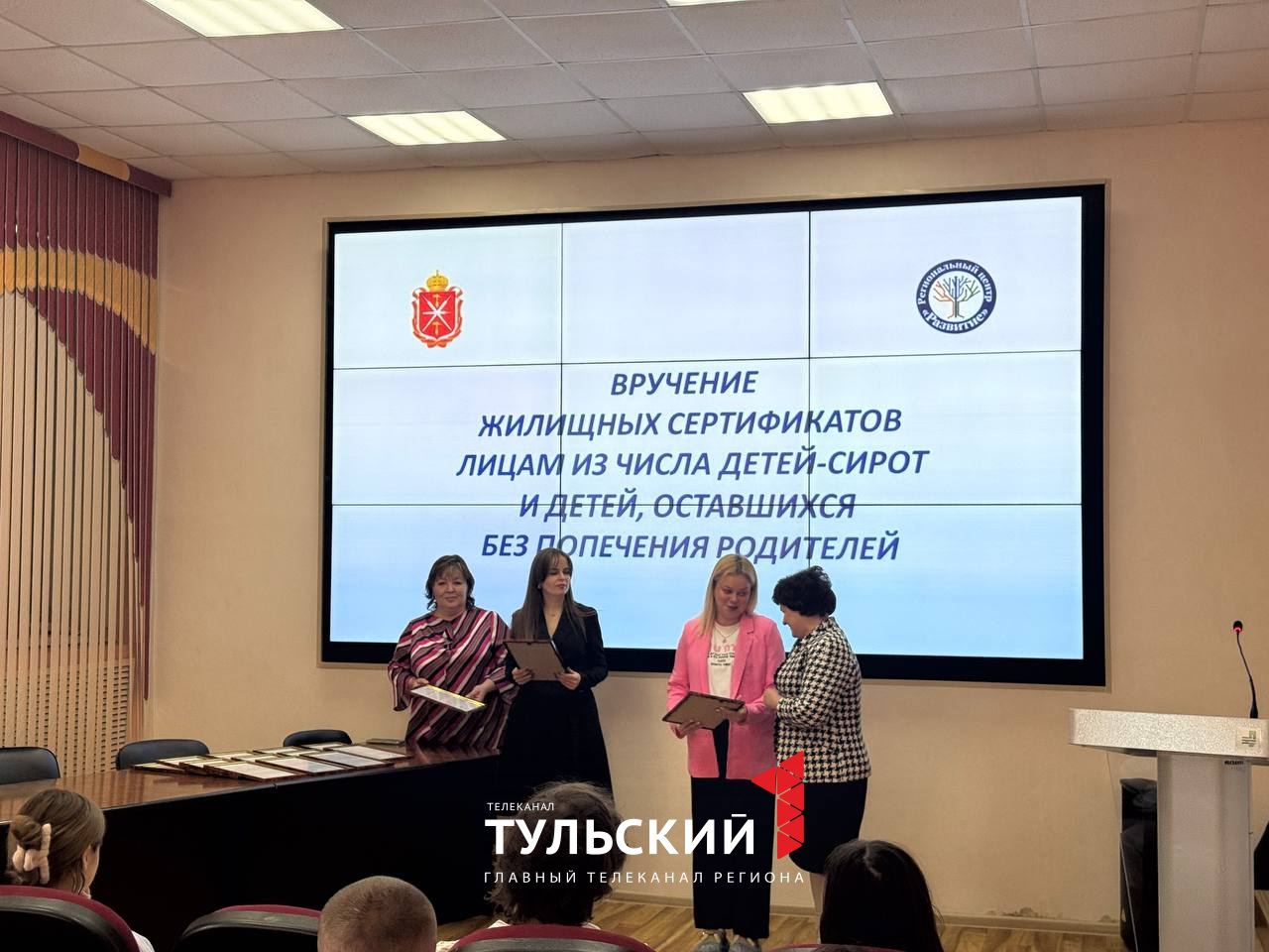 Детям-сиротам Тульской области вручили жилищные сертификаты. 30 января состоялось торжественное вручение жилищных сертификатов 55 молодым людям, относящимся к категории детей-сирот и оставшихся без родительского попечительства. Церемония прошла в Центре «Развитие».