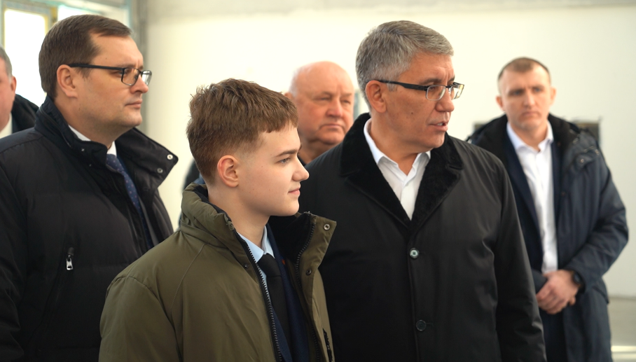 На строительную площадку глава региона приехал вместе с 7-классником Семеном Заниным. Школьник – член детского общественного совета при Минстрое России. Любовь к возведению зданий ему привили еще в детстве.