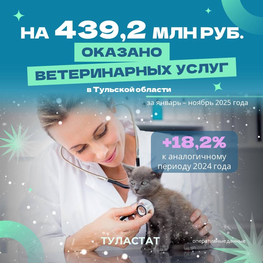 439,2 миллиона рублей потратили жители Тульской области на ветеринарные услуги в 2025 году. Об этом сообщает «Туластат».