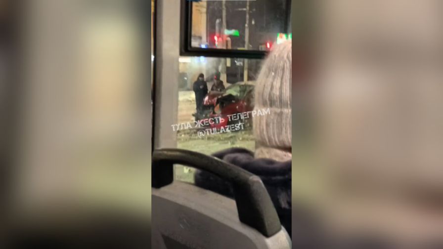 Легковушка и маршрутка столкнулись в Туле. Видео в соцсетях публикуют очевидцы.