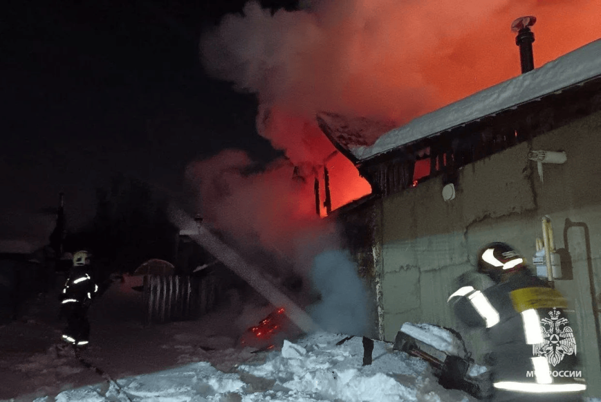 Частный дом загорелся в деревне Долгое Киреевского района. Его потушили 10 человек и 4 единицы техники от МЧС России.