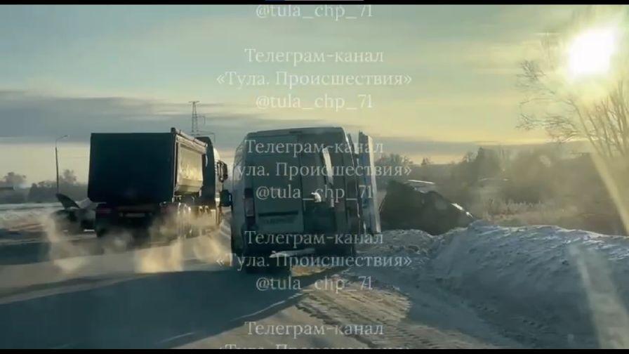 "Газель" улетела в кювет на трассе "Тула — Новомосковск". Кадры с места аварии публикуют очевидцы.