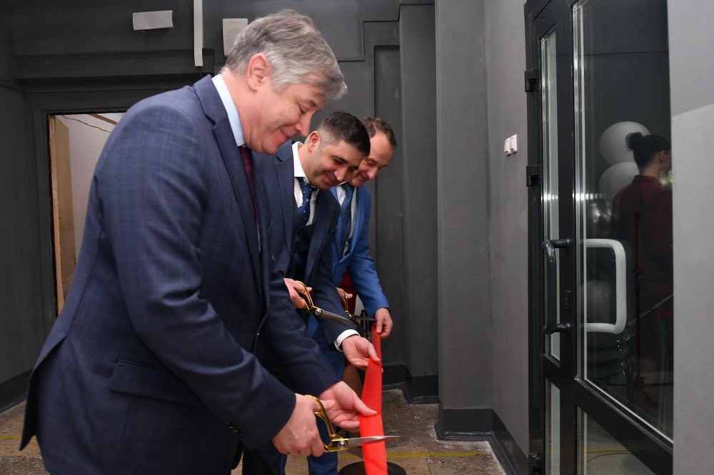 Церемонию открытия отметили традиционным ритуалом - красную ленточку перерезали ректор ТулГУ Олег Александрович Кравченко, директор Института строительства и архитектуры Роман Анатольевич Ковалев и руководитель Обособленного подразделения "Веза-Чехов" Демир Эмирбекович Абдулмеджидов.