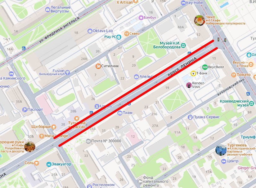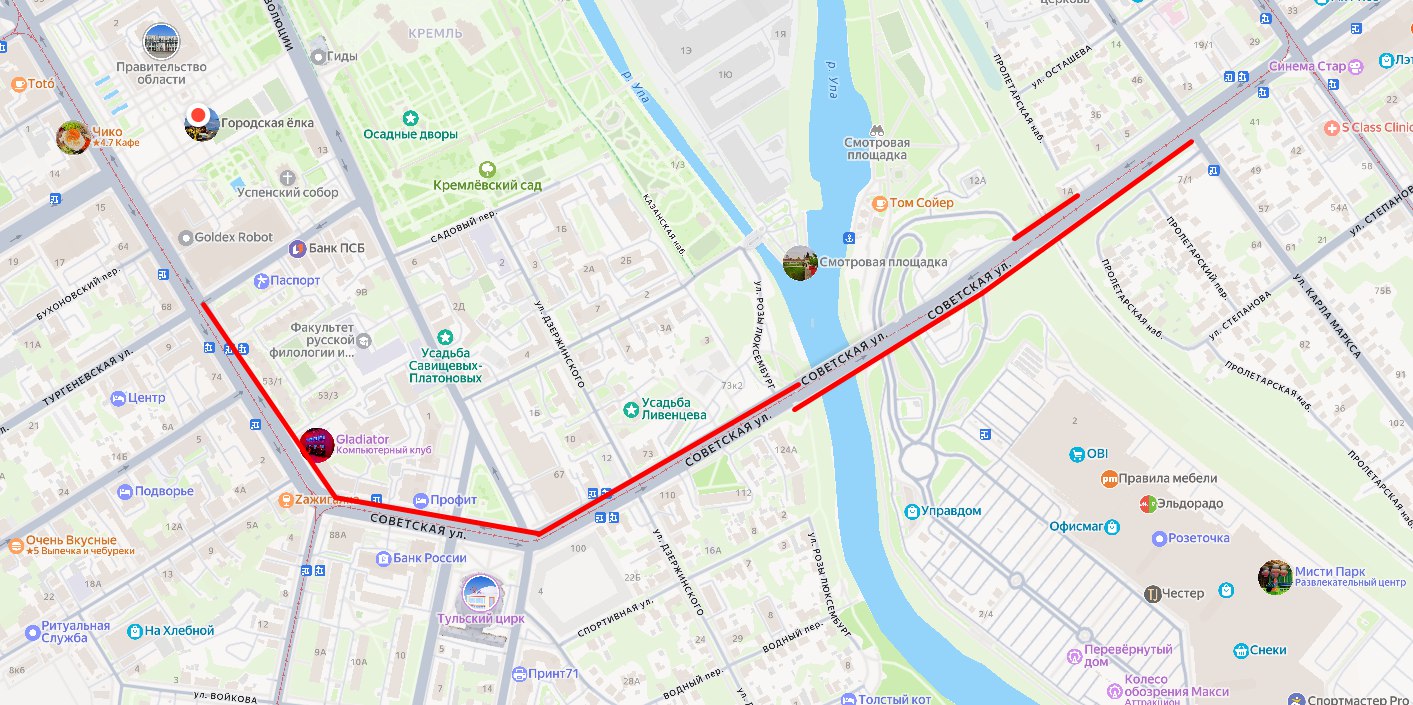 - Участка от Чулковского моста до улицы Тургеневской по улице Советской (нечетной стороне);