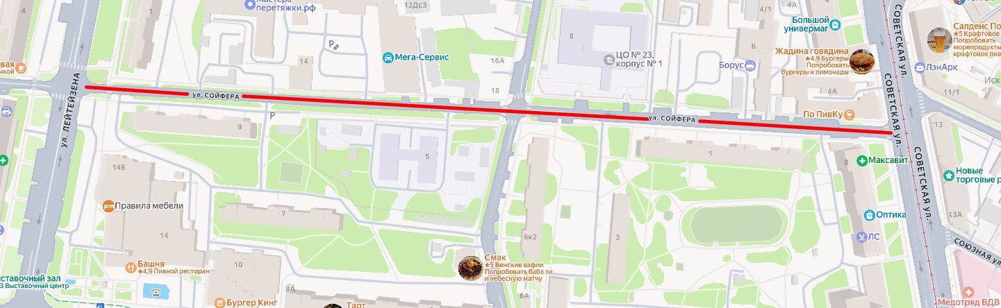 - По улице Сойфера и участка от улицы Первомайской до Демонстрации по улице Вересаева.