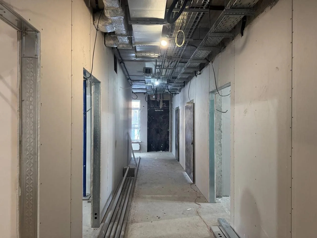 Теперь туляки монтируют функциональный вентилируемый фасад, обустраивают внутренние перегородки и занимаются черновой отделкой. В процессе прокладка внутренних инженерных сетей, а также расчистка территории и подготовка к благоустройству.