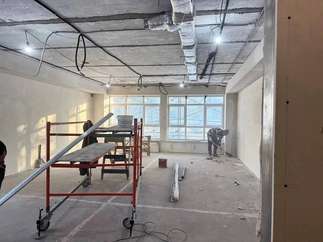 Рабочие уже восстановили и усилили поврежденные конструкции, полностью заменили внутренние и наружные сети теплоснабжения и обустроили новые входные группы с пандусами.
