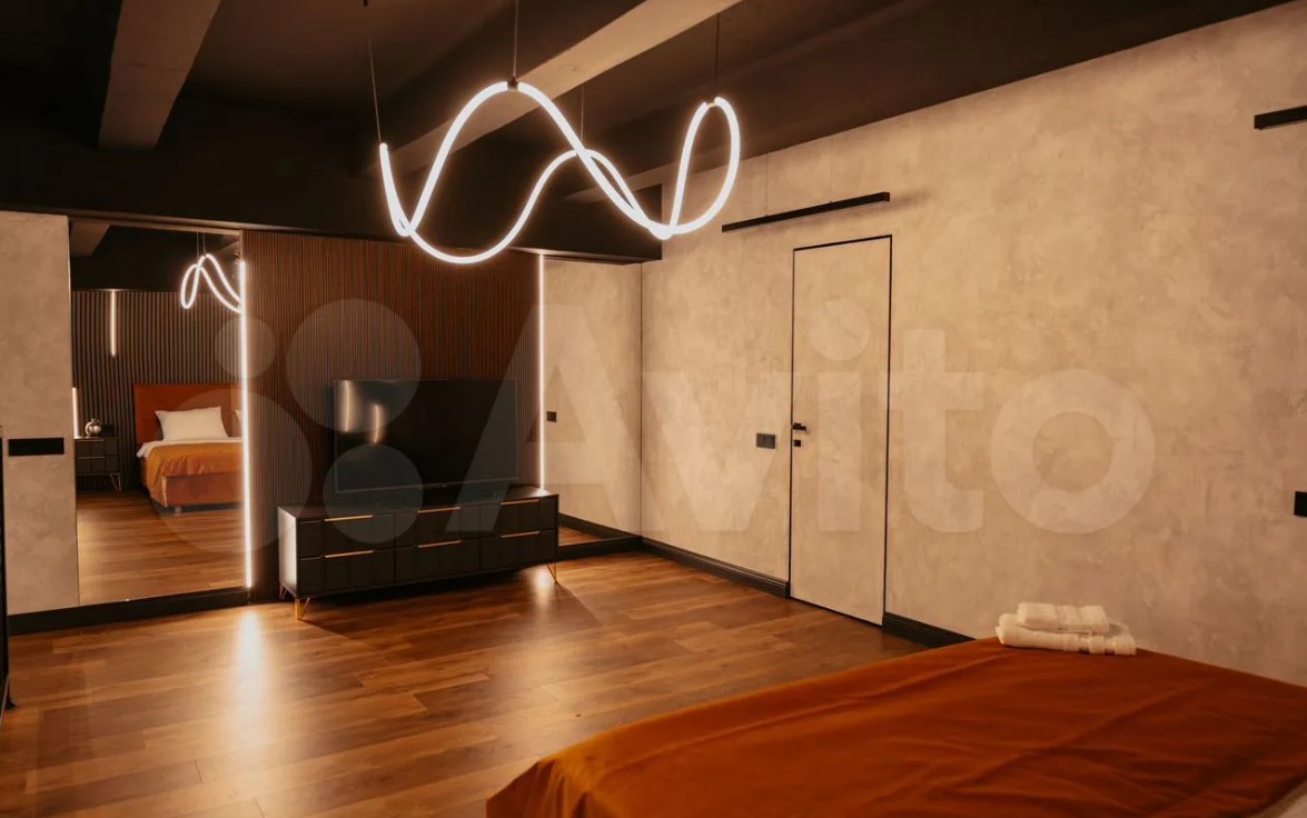 Немного дороже обойдутся двуxуpовневые апaртaменты с дизайнерским ремонтом в нуар-доме на улице Каминского - 150 тысяч рублей в месяц. Из панорамного окна здесь в любое время суток открывается шикарный вид на центр города. Площадь апартаментов превышает 100 квадратных метров, а высота потолков в гостиной зоне - 5,5 метров. Автор объявления утверждает, что в апартаментах есть абсолютно все для комфортного проживания.
