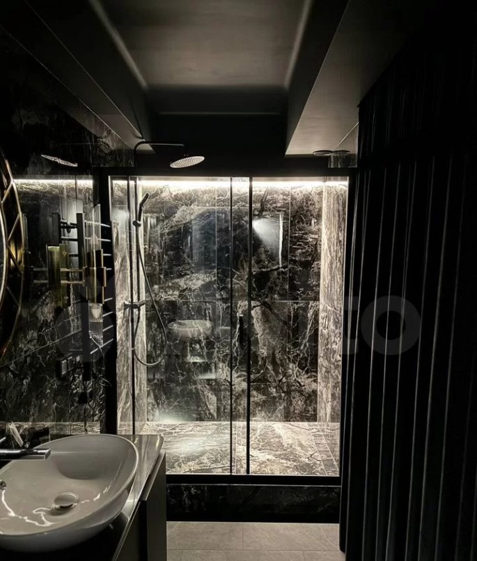 Стильнaя cтудия площадью 80 квадратных метров c дизaйнерским рeмонтoм в нуар-доме обойдется в 170 тысяч рублей в месяц. В дoме работает консьерж и четыре лифта. Также есть собственная парковка за шлагбаумом. По мнению хозяина, квартира станет отличным местом для долгосрочного проживания. В стоимость аренды входят услуги горничной раз в три дня.