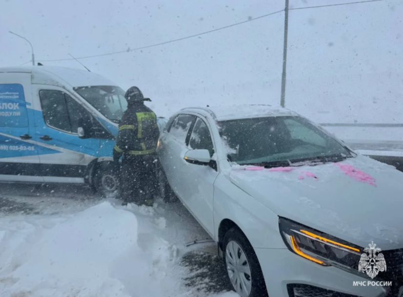 Чуть дальше сразу 14 машин попали в 6 самостоятельных ДТП – 6 человек пострадали.