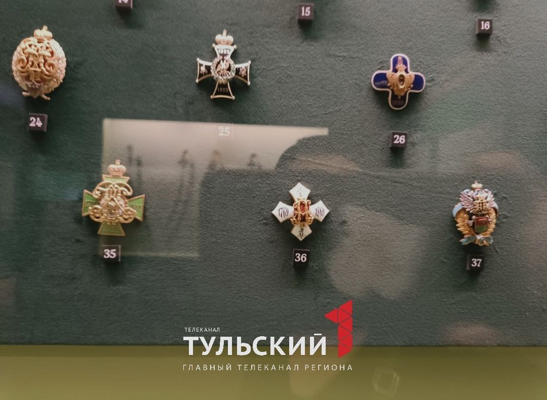 Так, среди нагрудных знаков есть знак 72 пехотного Тульского полка 1912 года. Выполнен он в форме креста, в центре которого - герб города Тулы. На гербе - вензель Николая II с императорской короной.