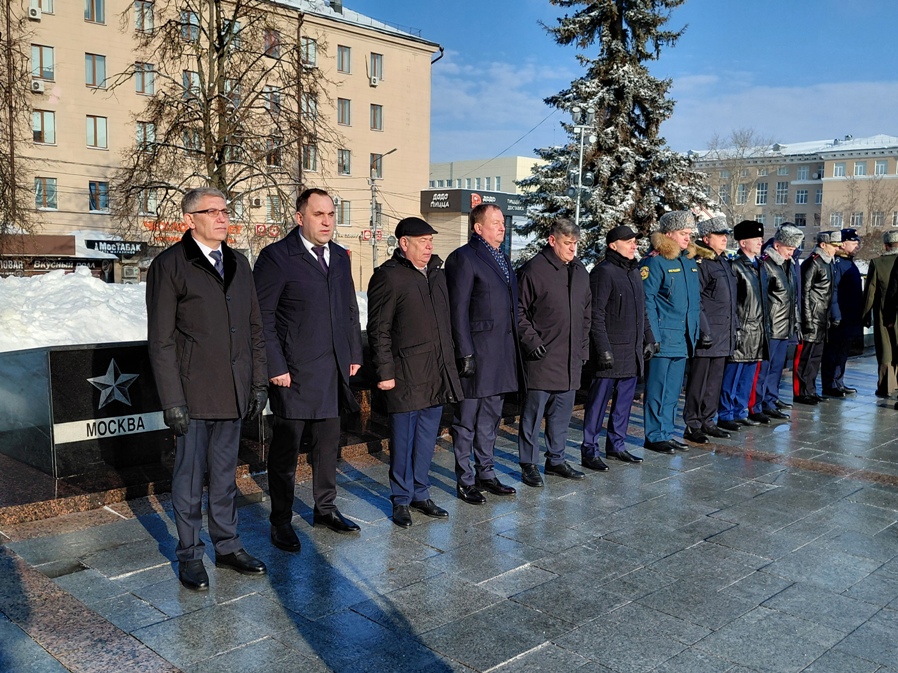 Они возложили цветы к Вечному огню, стелам городам-героям и памятнику «Солдат и рабочий». Также собравшиеся почтили память погибших минутой молчания.