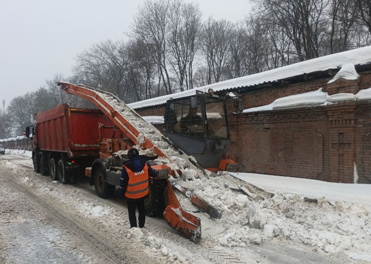 В планах на сегодня — очистка проезжих частей, пешеходных зон и парковочных карманов, а также вывоз собранных снежных масс.