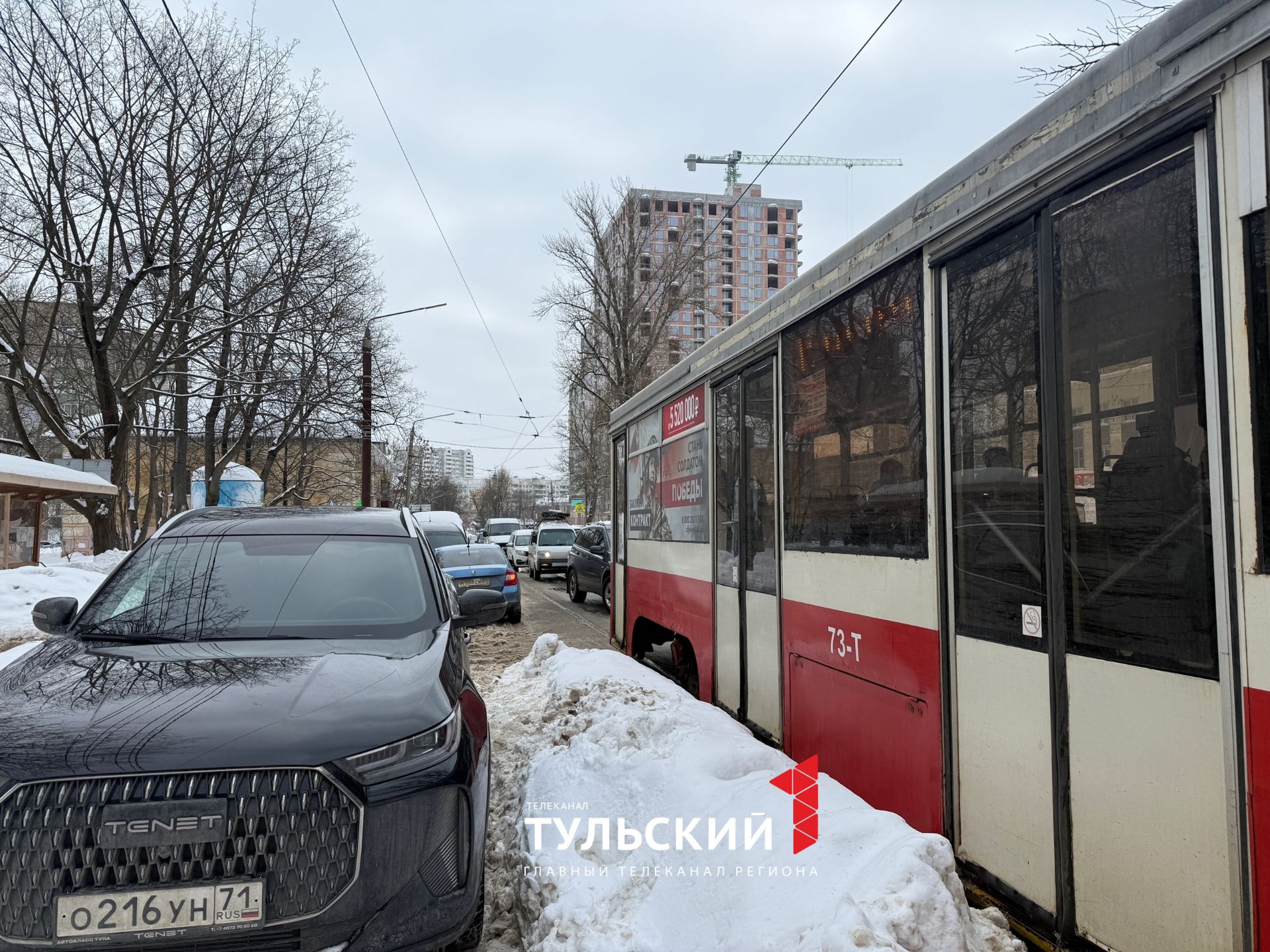 На улице Михеева в Туле остановилось движение трамваев