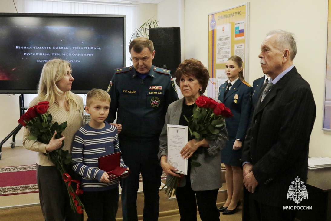 Награду супруге героя передал заместитель главы МЧС России Вячеслав Бутко
