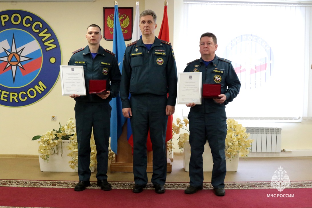 Кроме того, старшие инструкторы по вождению пожарной машины - водители Николай Романов и Сергей Гущенков - получили медаль "За отвагу на пожаре".