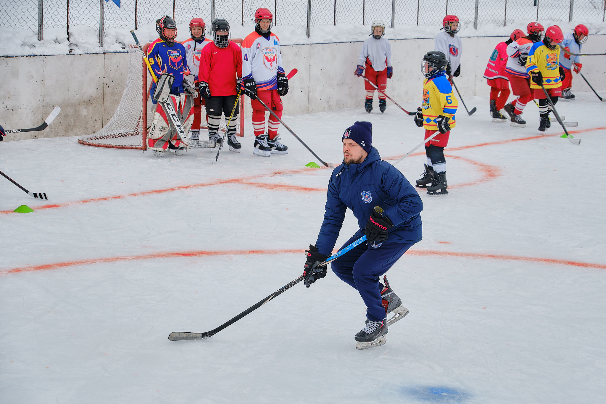 Занятие построили так, чтобы оно принесло пользу хоккеистам с любым уровнем подготовки. Под присмотром наставников ребята работали над техникой скольжения, учились увереннее контролировать шайбу и отрабатывали точные передачи. Юные спортсмены старались не пропустить ни одного совета, впитывая опыт, который в обычной дворовой игре не получить.