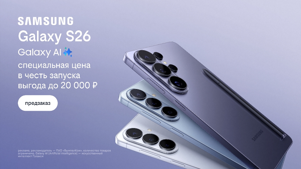 В Билайне стартовал предзаказ на флагманскую серию Samsung Galaxy S26. Чтобы получить новый смартфон одним из первых, достаточно оформить предзаказ в интернет-магазине Билайна до 5 марта 2026 года. На период предзаказа оператор предоставляет выгоду до 20 000 рублей — размер предложения зависит от модели и конфигурации.