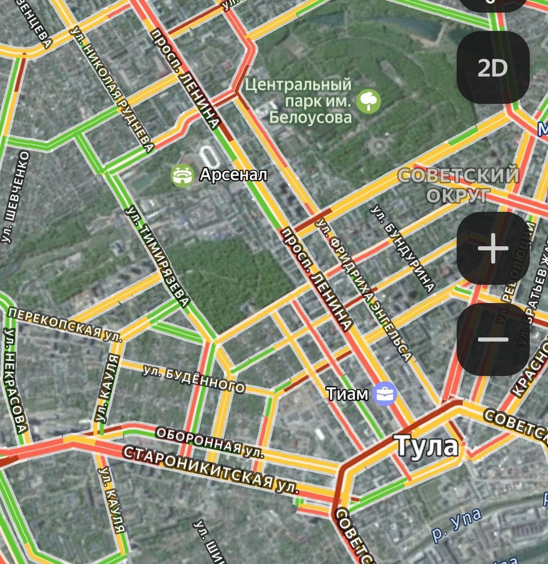 Тула окрасилась в бордовый цвет. Как сообщают онлайн-карты, в пробках встал проспект Ленина в районе Центрального стадиона и перекрестка с улицей Советской.