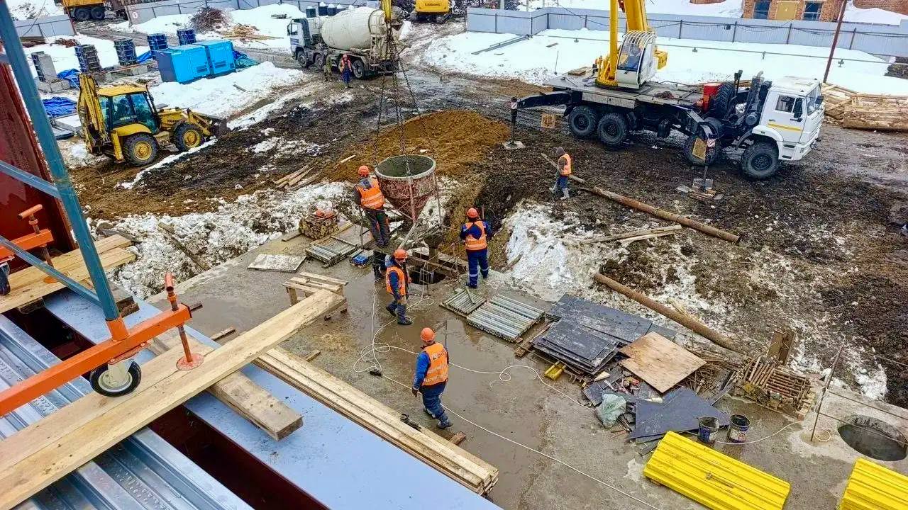 На площадке задействованы 75 рабочих и 15 единиц спецтехники