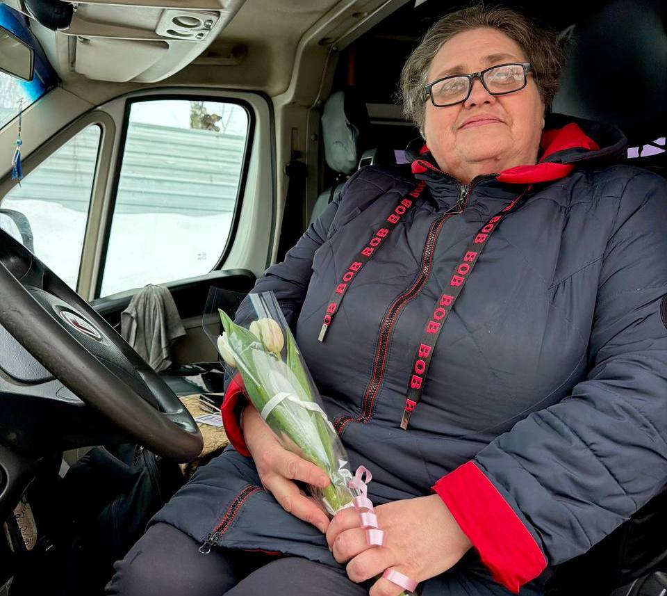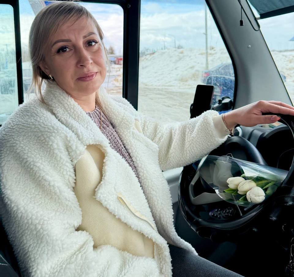 Поздравили специалисты и водителя маршрута №140К «Новомосковск-Сокольники-Спасское» - Анну Матромеги. В профессию пришла случайно, по вакансии и по итогу работает уже 8 лет.