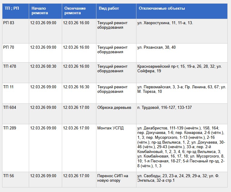 Света не будет с 09:00 до 17:00 из-за капитального ремонта электрооборудования, монтажа УСПД, обрезки деревьев и переноса СИП на новую опору.