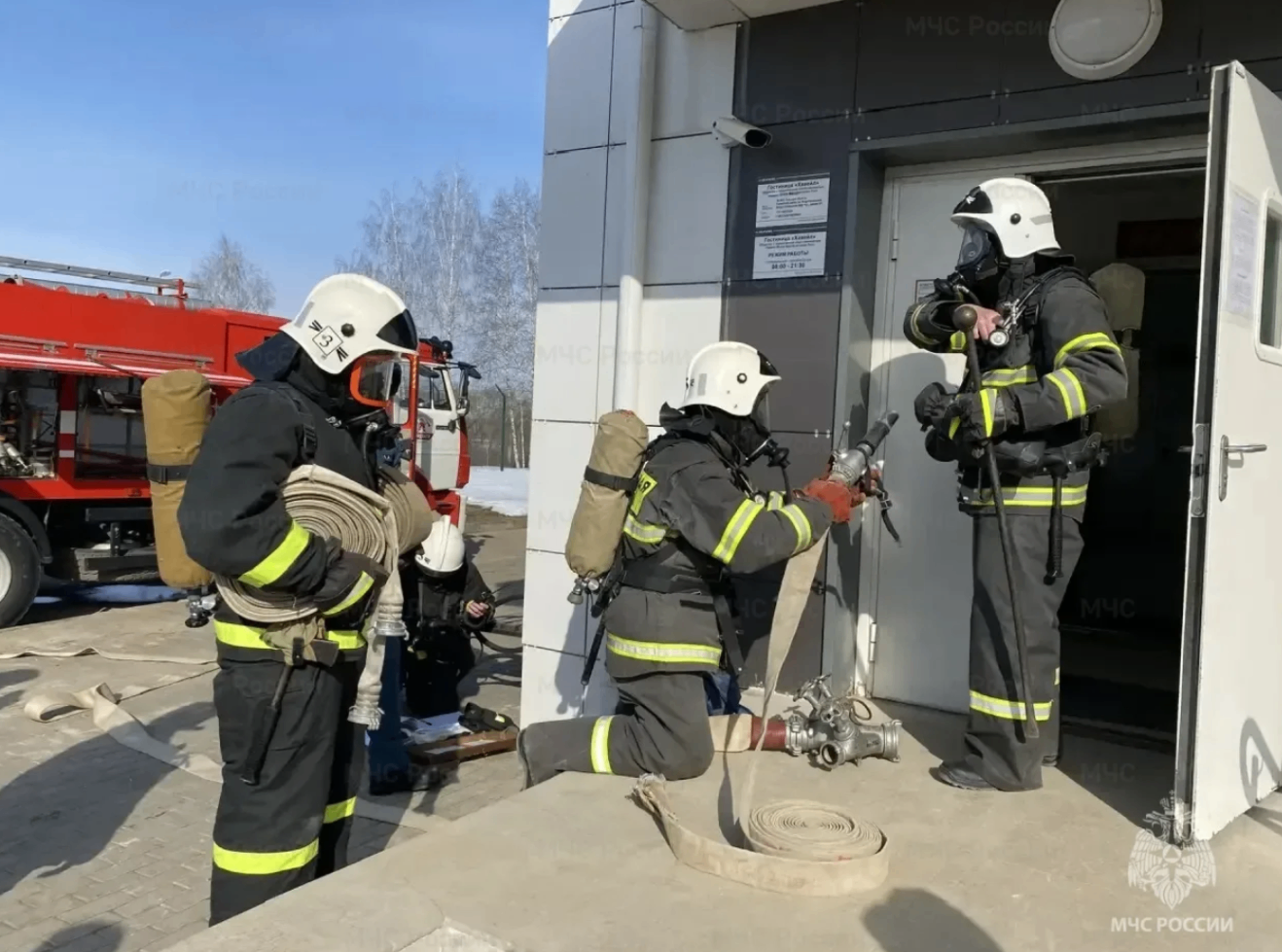Первое пожарное подразделение прибыло на место условного ЧП в считаные минуты. Бойцы в составе звена газодымозащитной службы провели разведку в задымленных помещениях. В ходе осмотра был обнаружен работник, который не смог самостоятельно покинуть здание из-за плотного дыма. Сотрудники МЧС оперативно эвакуировали «пострадавшего», использовав специальные спасательные устройства.