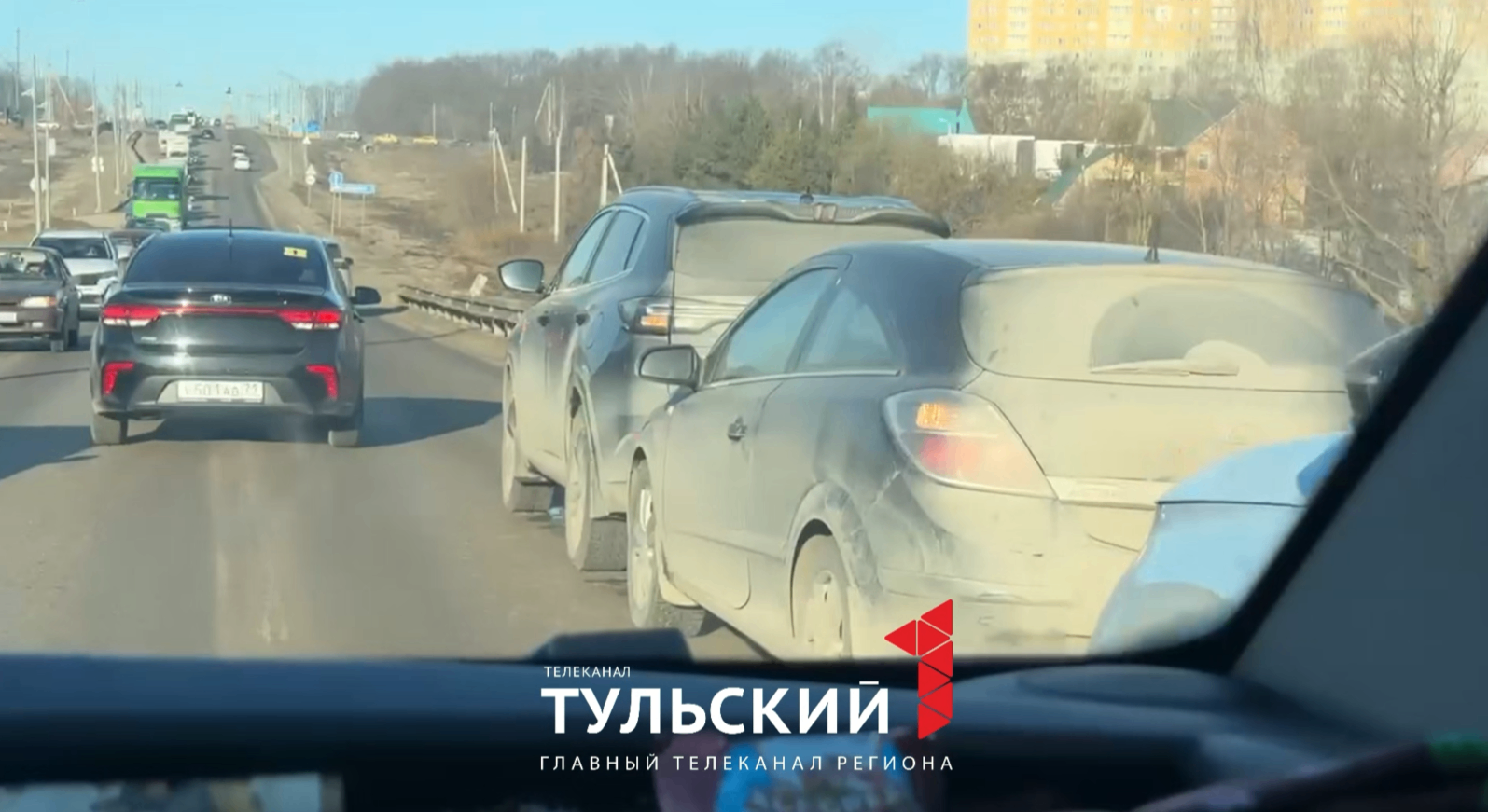 Около "Метро" в Туле собрался "паровозик". Об этом сообщает корреспондент "Первого Тульского".