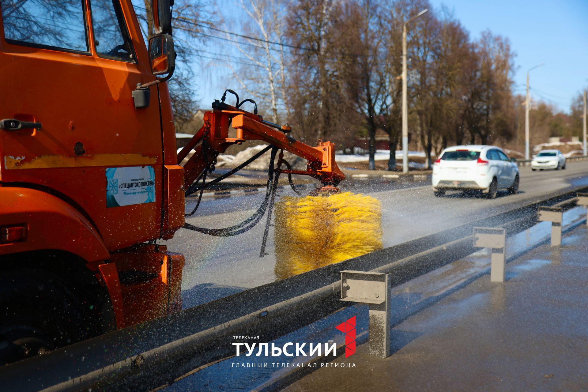 На дорогах много пыли и грязи, так как было использовано много песка и реагентов в этом зимнем сезоне. Сейчас на дороги вышли комбинированные дорожные машины (КДМ). Они очищают отбойники и магистральные улицы, убирают тротуары. В последнем случае используют керхеры. Для промывки дорог, когда идут колонной, — рейки. Для тротуаров достаточно заправить машину один раз, для дорог — 3–4 раза в день. Моют также светофоры, остановки. Все работы должны закончить к майским праздникам. А потом приступят к покраске бордюров, остановок и т.д.