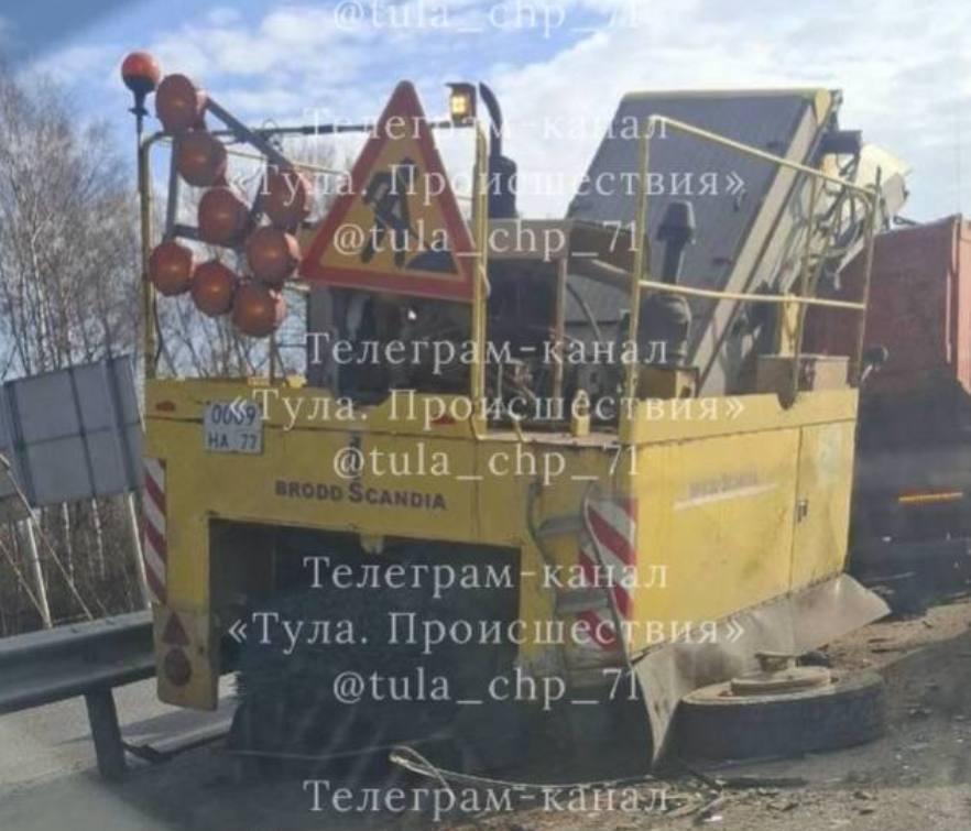 Как сообщают очевидцы, произошло столкновение легковушки "Митцубиси" со спецтехникой. МАшины имеют серьезные механические повреждения.
