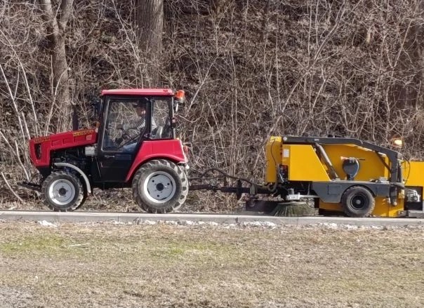 С применением тракторной техники уборка улично-дорожной сети велась на улицах Рязанской и Генерала Маргелова.