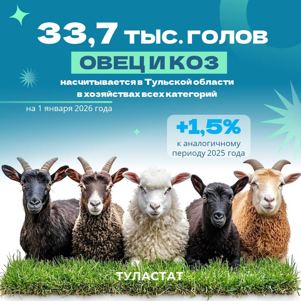 По данным Тулстата, на 1 января 2026 года в хозяйствах всех категорий Тульской области насчитывалось 33,7 тысячи голов овец и коз. Поголовье увеличилось на 1,5% по сравнению с аналогичным периодом 2025 года.