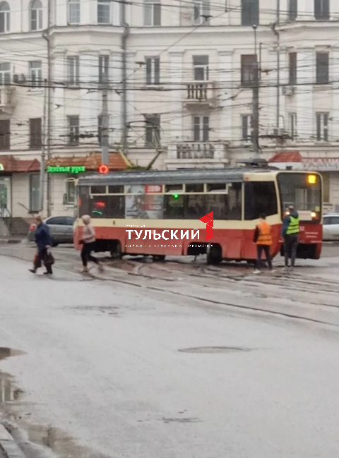 На пересечении улиц Оборонной и Советской трамвай сошёл с рельсов. Об этом стало известно "Первому Тульскому" из собственных источников.