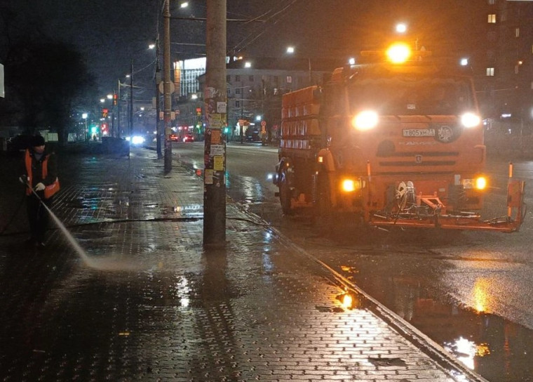 Мойка тротуаров с помощью малой механизации пройдёт на улицах Фрунзе, Первомайской, Октябрьской, Советской и проспекте Ленина.