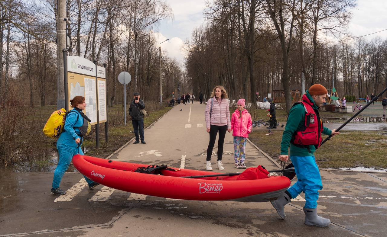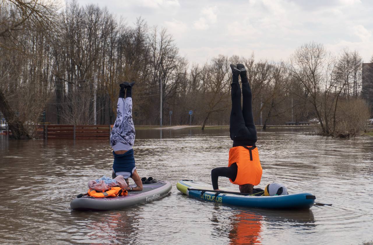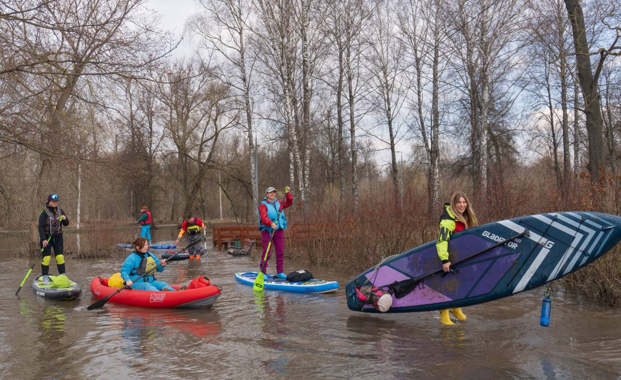 4 апреля в оружейной столице заметили самых активных туляков, которые надели резиновые сапоги, взяли доски в руки и отправились покорять вышедшие из берегов водоемы.