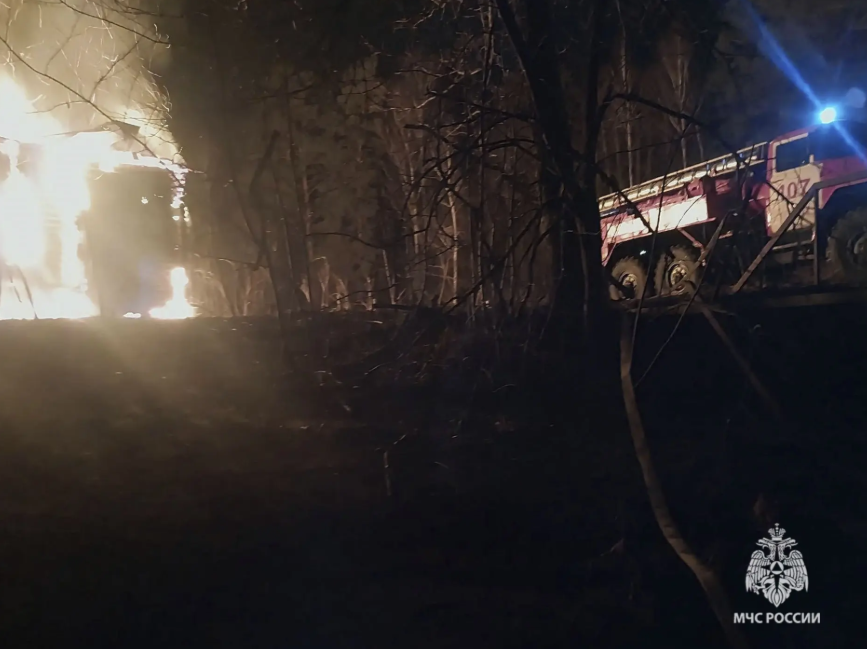 На улице Заречная в деревне Тяпкино загорелось неэксплуатируемое сооружение. Пожар потушили 7 спасателей и 4 единиц техники. Пострадавших нет.
