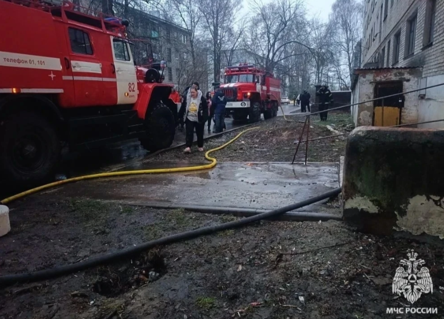 На улице Менделеева в поселке Шварцевский загорелась квартира в многоквартирном жилом доме. Пожар тушили 11 человек и 4 единицы техники. Пострадавших нет. Известно, что спасли одного человека.