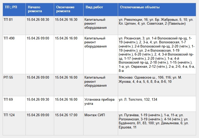 Кто из туляков останется без электричества 15 апреля