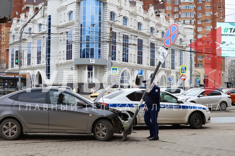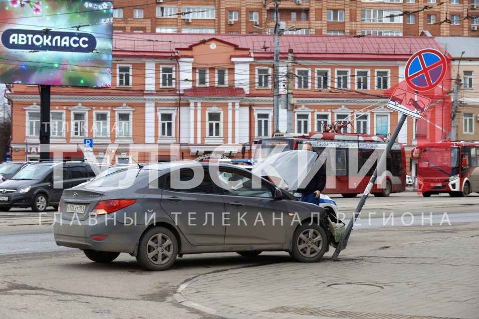 По предварительной информации, недалеко от ТЦ "Утюг" серый «Хендай» влетел в дорожный знак и снес его.