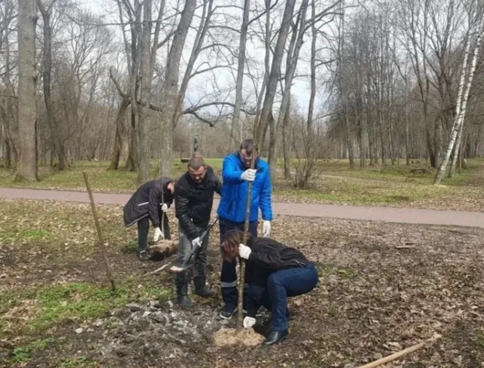 Субботник в Богородицком дворце-музее начался с высадки молодых саженцев. Сотрудники Тульского музейного объединения вместе с работниками местного завода «Ресурс» посадили липу, рябину и кусты калины.