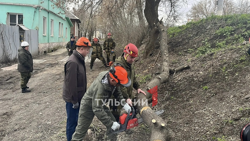 Дмитрий Миляев взял в руки бензопилу и провел опиловку деревьев. Участники субботника на берегу Упы убрали поросль и очистили территорию от мусора.