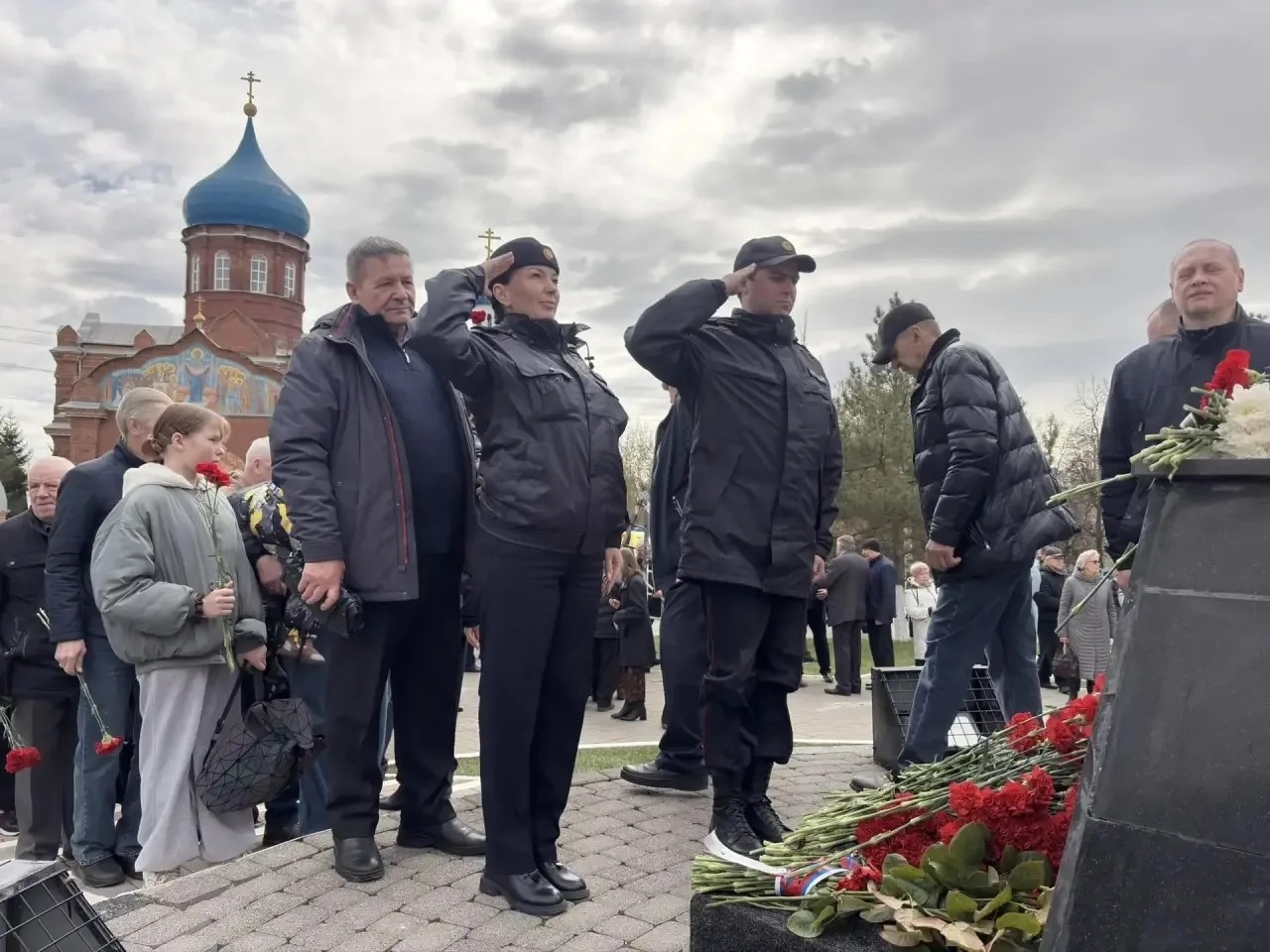 У памятника ликвидаторам собрались представители власти, сотрудники УМВД, кадеты, юнармейцы, участники "Движения Первых", школьники, сами ликвидаторы и члены их семей.
