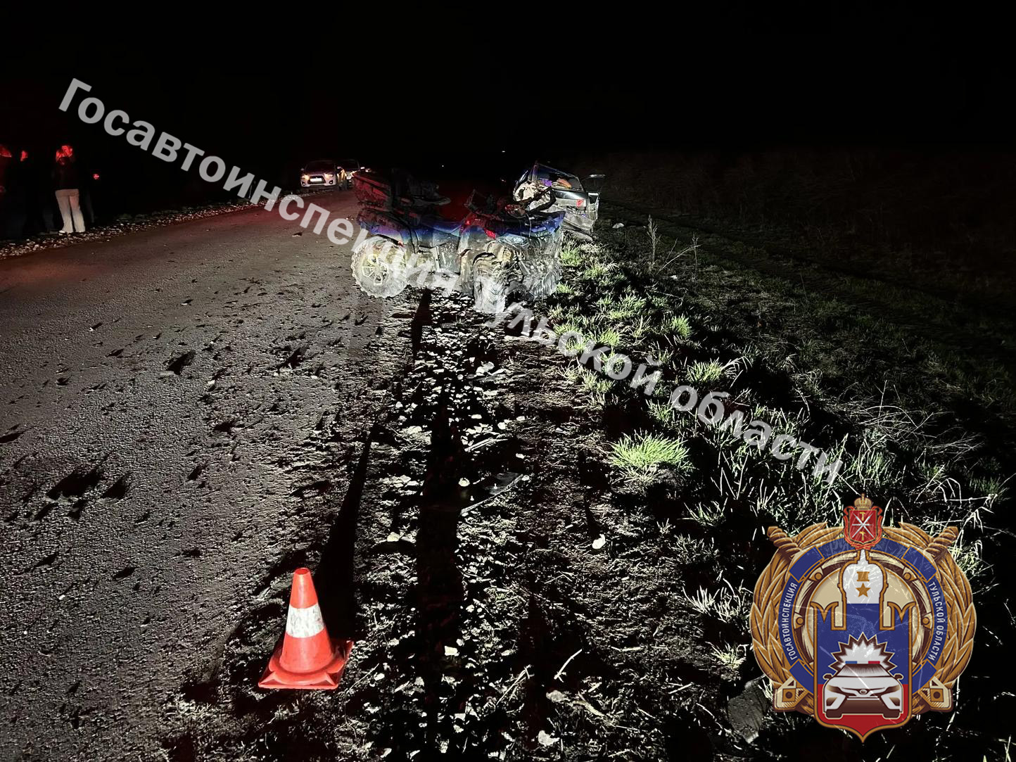 В ведомстве сообщают, что ДТП случилось 25 апреля в 21:02 на 8-м километре дороги Орел-Ефремов-Кочкино в Ефремовском районе Тульской области. 30-летний мужчина управлял квадроциклом «CFMOTO CFORCE600 EPS», не справился с управлением и врезался в стоящий автомобиль «ВАЗ 21104».