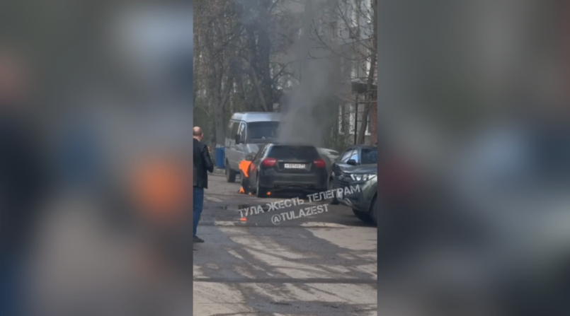 В Туле возле дома загорелся Mersedes. Об этом сообщают очевидцы в социальных сетях.