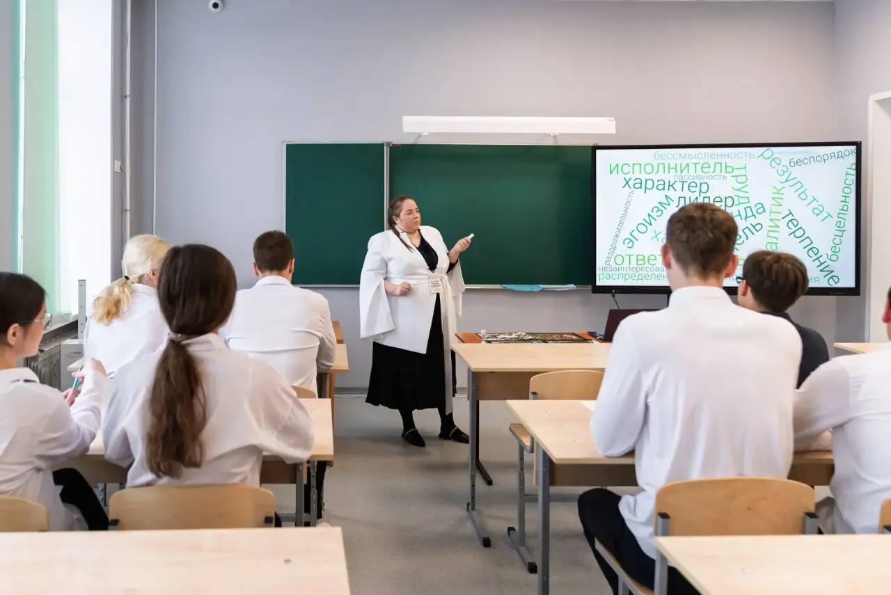Конкурсный день для "учителей года" стартовал с Разговоров о важном. В преддверии Дня весны и труда темой стала важность работы в команде. Молодые учителя и педагоги дополнительного образования поделились своим опытом, а преподаватели и мастера производственного обучения колледжей провели открытые учебные занятия.